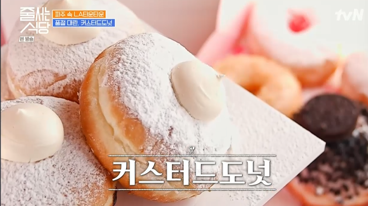 이 집의 대표 도넛은 노릇하게 튀어낸 빵에 커스터드 크림을 가득 채운 커스터드 도넛! 적당한 달달함으로 남녀노소 취향 저격! 매번 품절 대란을 일으키고 있대요.