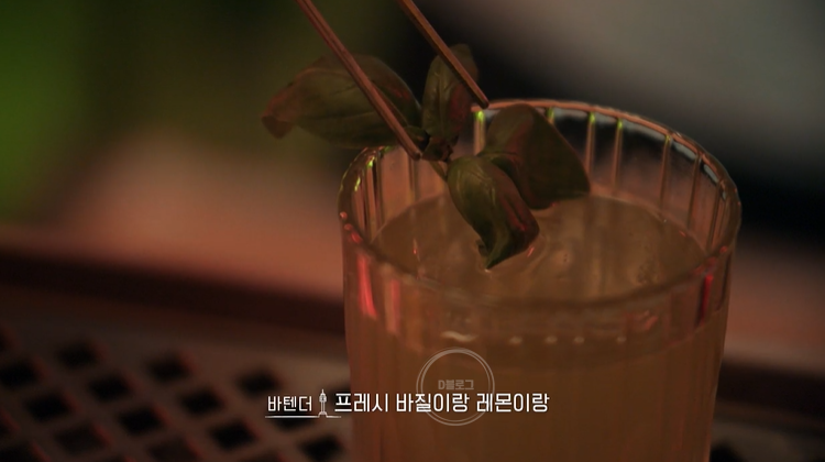 이효리가 주문한 칵테일은 '바질 스매시' 프레시 바질이랑 레몬, 설탕, 진 베이스래요. 이효리가 바질 향이 진하다며 만족해하네요.