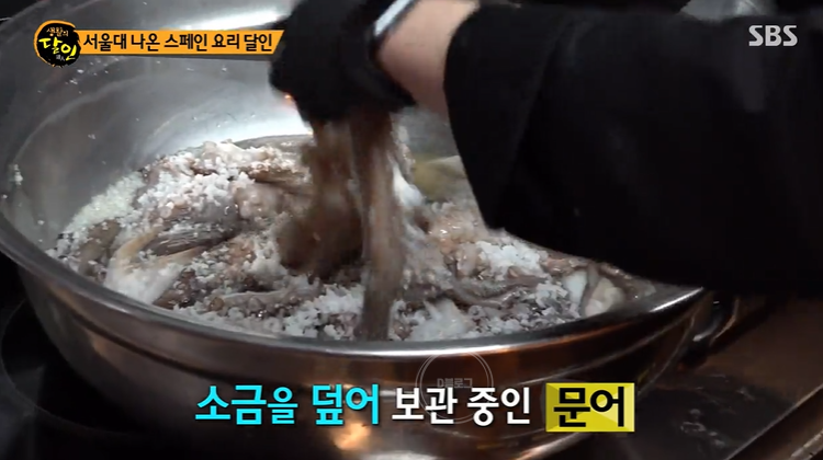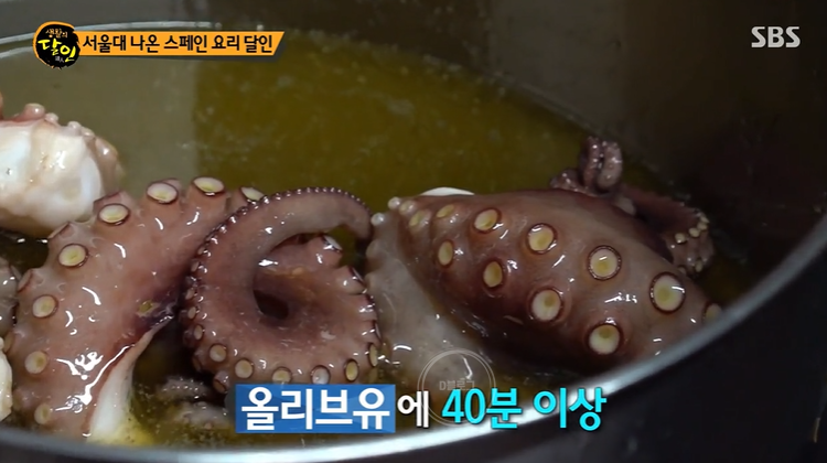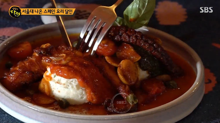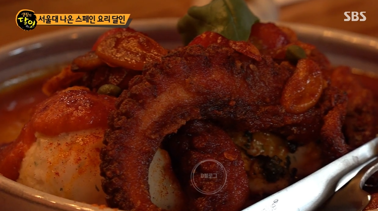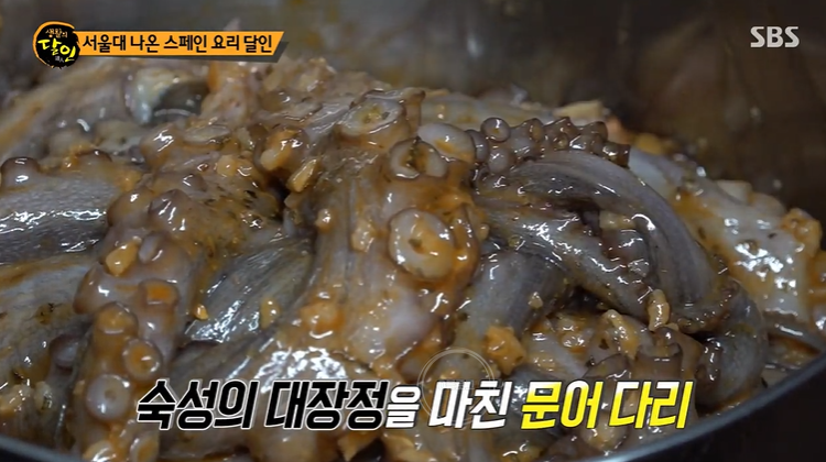 서울 성북구 스페인 요리 달인이 등장했어요. 서울대를 졸업한 셰프가 사장님으로 있다고 하는데요. 이 집의 대표 메뉴는 바로 문어 요리! 기름에 살짝 튀긴 문어를 특제 소스와 볶아요. 여기에 바질 페스토와 브라바 소스를 곁들이면 완성! 문어가 마시멜로우처럼 엄청 부드럽대요! 와 상상이 안 가네요.