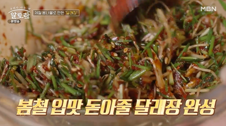 3. 자른 달래에 양조간장 3큰술, 조선간장 1큰술 추가