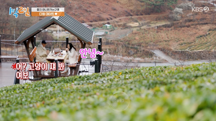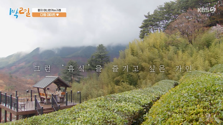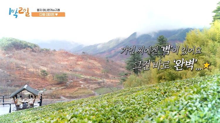 '1박 2일 시즌4' 한가인 편 구례 촬영지를 소개해요. 여행 마지막 날 한가인과 연정훈은 다원 데이트를 즐겼는데요. 푸릇푸릇 녹차밭이 겨울인데도 너무 예쁘네요.