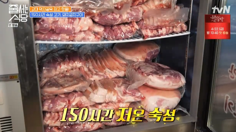 손님들이 이 집 고기가 특별히 맛있다고 하는 이유는, 저온에서 긴 시간 숙성하기 때문이에요. 무항생제 국내산 전지를 무려 150시간 저온 숙성한대요.