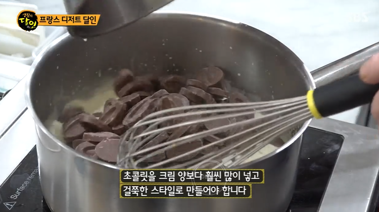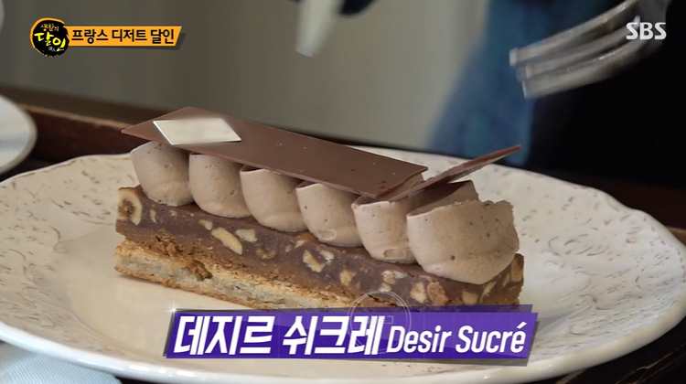 달인은 15살부터 이 일을 시작했대요. 현재 나이는 42세인데 경력이 정말 화려하네요. '데지르 쉬크레'는 밀크 초콜릿과 헤이즐넛이 조화를 이룬 케이크예요. 달인이 좋아하는 맛을 모아 만들었대요.