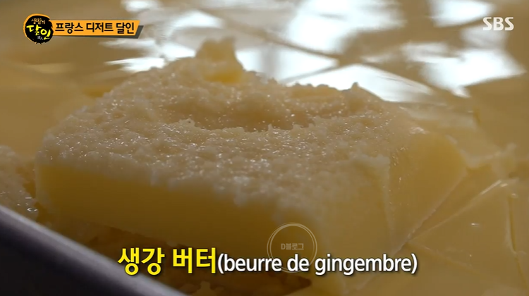 시트부터 남다른 게 달걀흰자 베이스로만 만들어진대요. 식감의 결정적 역할을 하는 건 밀가루 반죽을 얇게 펴서 구운 크레이프! 크레이프에 사용되는 달걀은 온도가 굉장히 중요해서 얼음에 넣어둔대요. 이 달걀에서 흰자를 분리한 후 밀가루와 섞어요. 그리고 팬에 생강으로 향을 낸 버터를 녹이고 반죽에 부어요. 온도와 타이밍이 생명이라 이 과정이 굉장히 빠르게 진행된다고 하네요.