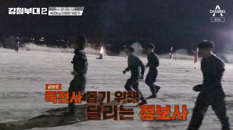 그렇게 먼저 정보사가 결승선을 통과했어요. 그런데 쉬지도 못하고 바로 특전사에게 달려가네요. 이번 시즌은 정보사가 1등 하려나요? 다 잘하네요 ㄷㄷ