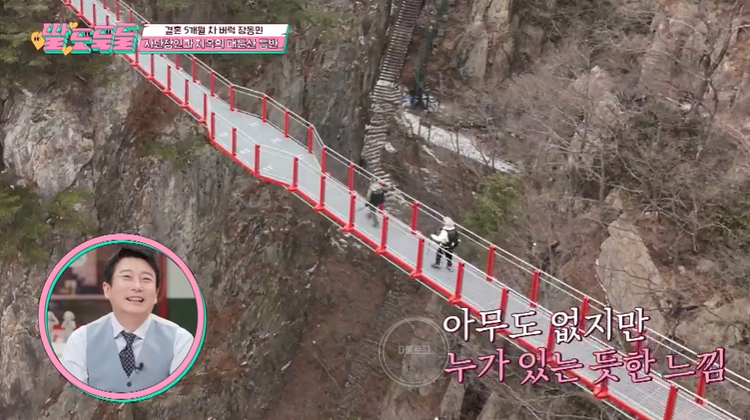 '딸도둑들' 결혼 5년 차 장동민이 장인과 단 둘이 등산에 나섰어요. 도착지는 대둔산! 케이블카도 타고 출렁다리도 있어서 더 등산할 맛 나는 것 같아요.