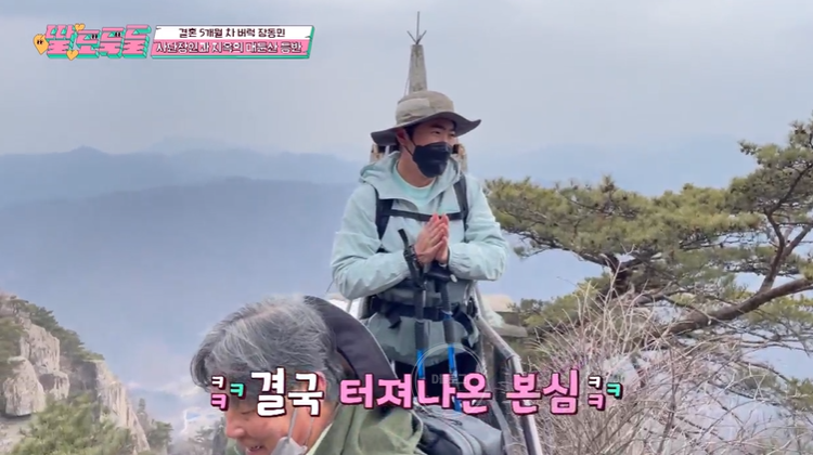 장인 나이가 70세라는데 너무 정정하시네요! 매일 산을 타신다는데 그게 건강의 비결인가봐요. 그 뒤를 힘겹게 오르는 44세 장동민ㅋㅋㅋ