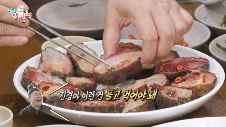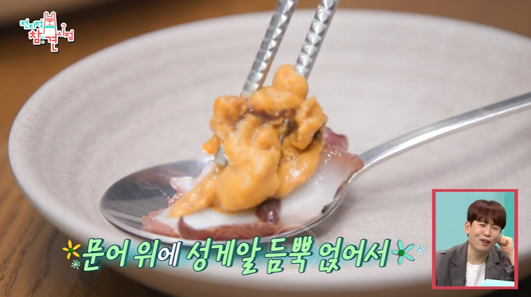 이영자 표 먹는 법은 문어 위에 성게알 듬뿍 올려 먹기!