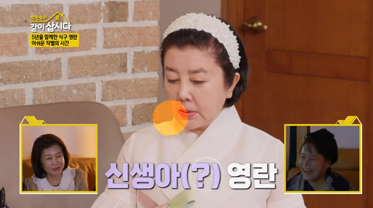 오랜 시간 침묵하던 혜은이는 "섭섭하죠.. 근데 영원히 못 보는 것도 아닌데 왜 이렇게 가슴이 아픈지 모르겠어요. 영란아 솔직한 내 마음은 다시 같이 살고 싶어. 네 마음은 어떤지 모르겠지만, 정말 다시 같이 살고 싶어. 건강하고 좋은 일 많이 있길 바라"