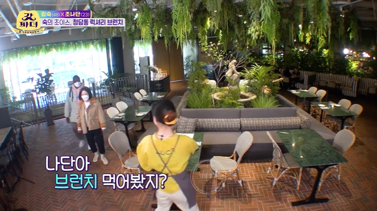 '갓파더'에 새롭게 합류한 김숙이 조나단을 위해 청담 고급 레스토랑을 찾았어요. 입구부터 초록 초록한 게 너무 예쁘더라고요. 인테리어도 럭셔리 그 자체!