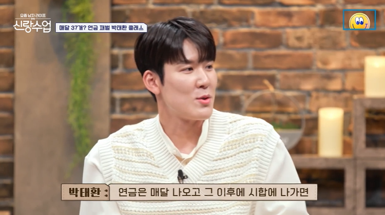 마린보이 박태환이 '신랑수업' 새 멤버로 합류했어요. 집도 공개했는데요. 그전에 스튜디오에서 어깨 길이 쟀는데 60cm 나왔어요 대박! 허벅지 둘레도 61cm! 집도 자가, 요리도 잘하고, 청소도 잘하고, 매달 연금도 나오고.. 신랑수업 벌써 졸업해도 되겠어요! 연금에 대해서 이날 박태환은 매달 나오고 그 이후 시합 나가면 연금 점수가 차 있어서 따로 현금으로 받는대요. 여자 친구 없는지 되게 오래됐다고 외로워하네요.