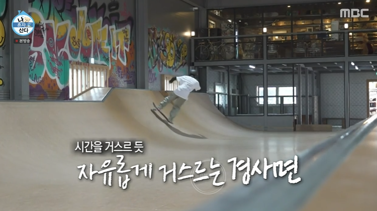 보드장 안이 되게 힙해요. 보니까 헬멧, 보드 렌탈이 가능하더라고요. 날씨 좋을 때나 코치님 기분 좋을 때 바비큐를 해준대요. 체력이 소진 많이 돼서 먹는 것도 중점적으로 관리한대요. 야식을 먹거나 양평 맛집도 다닌대요. 보드뿐만 아니라 사람들과 소통할 수 있어 더 좋아한다고.