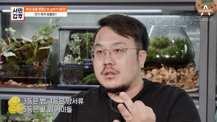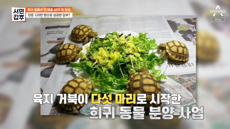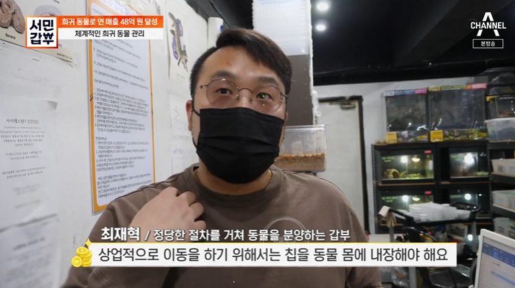 갑부는 언제부터 희귀 동물 사업에 매력을 가지기 시작했을까요? 갑부는 10살 때부터 희귀 동물을 키웠대요. 직업으로 시작한 건 22살. 취미로 시작한 일이 직업이 된 케이스네요. 처음 거북이 5마리를 데리고 와서 분양을 시작했고, 그게 지금까지 사업이 커졌대요. 5평 남짓한 지하상가에서 분양 사업을 시작했지만, 2년 동안 수익이 없어 경제적 어려움을 겪기도 했대요.