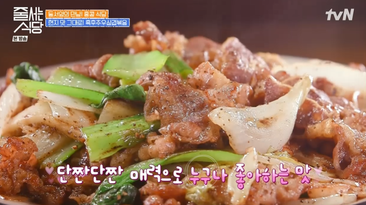 마지막 메뉴는 단짠의 매력이 넘치는 흑후추우삼겹볶음! 현지 맛 그대로라며 햇님도 박나래도 푹 빠졌네요. 특히 박나래 취저! 햇님은 인생 마라라며 웨이팅 시간 3시간을 줬어요.