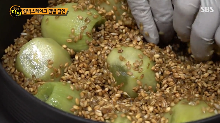 그 비법의 재료는 바로 청밀, 청보리! 청보리, 청밀은 일반 보리와 달리 탈피만 하고 엽록소 부분을 남겨서 질감도 부드럽고 소화하기 쉽대요. 달인의 또 다른 비법은 바로 키위! 키위는 연육 작용을 돕는 대표적인 과일이죠.