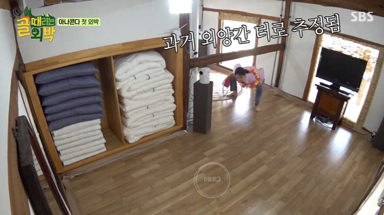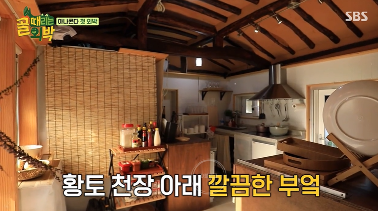 방 한가운데 가로지르는 기둥이 있는데, 과거 외양간 터로 추정된대요. 진짜 시골집을 리모델링했나봐요.