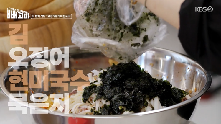 8. 묵은지, 현미 국수, 오징어, 김 넣고 비비기