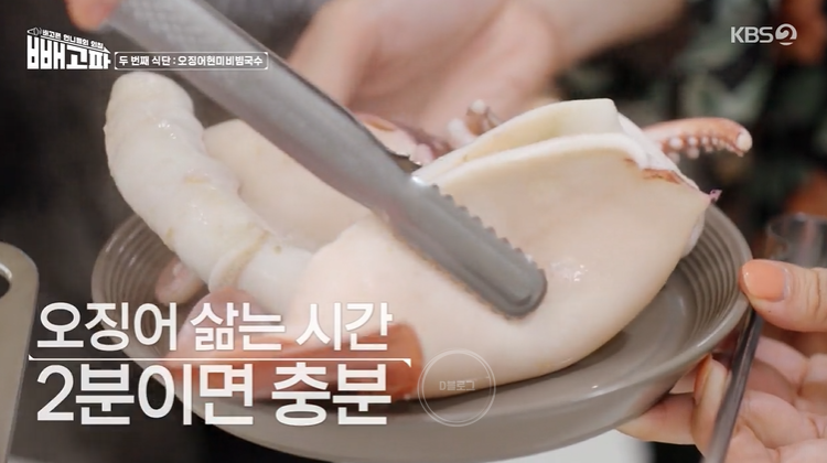 4. 끓는 물에 오징어 삶기 2분