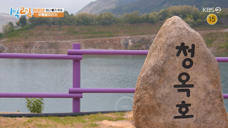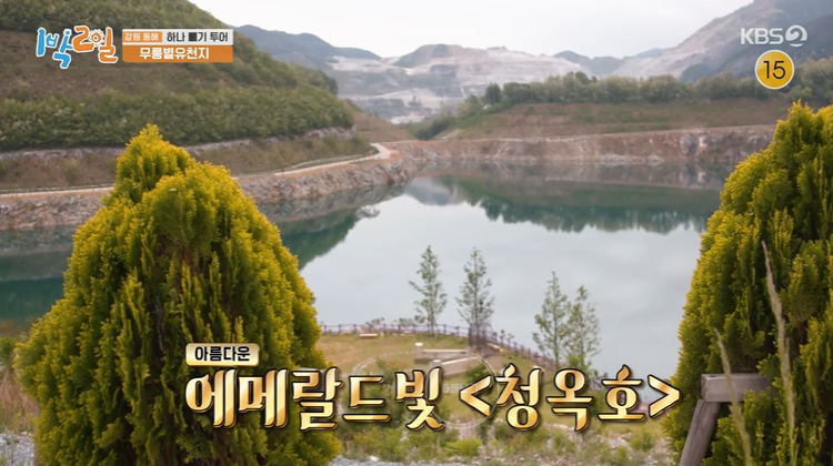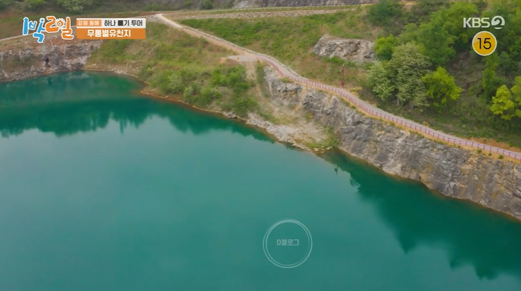 '1박 2일'에 소개된 동해 가볼 만한 곳 무릉별유천지! 무릉별유천지는 2017년까지 국내 최대 석회석 채석장이었어요. 하지만 현재는 스카이 글라이더, 알파인코스터, 오프로드 루지, 롤러코스터형 집라인, 무릉별열차, 두미르 전망대, 라벤더 정원, 쇄석장(전망카페) 등을 즐길 수 있는 테마공원으로 탈바꿈하였죠! 특히 에메랄드빛 청옥호 뷰가 너무 아름답더라고요!