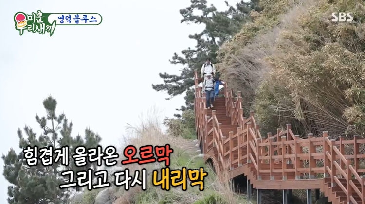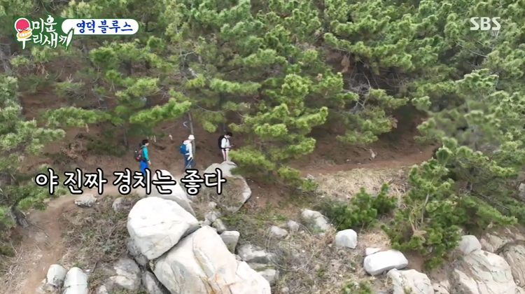 한쪽에선 새 소리가 나고, 한쪽에선 파도 소리가 나요. 서장훈 말처럼 저기 걷고 저녁에 영덕 대게 먹으면 딱 좋겠어요.