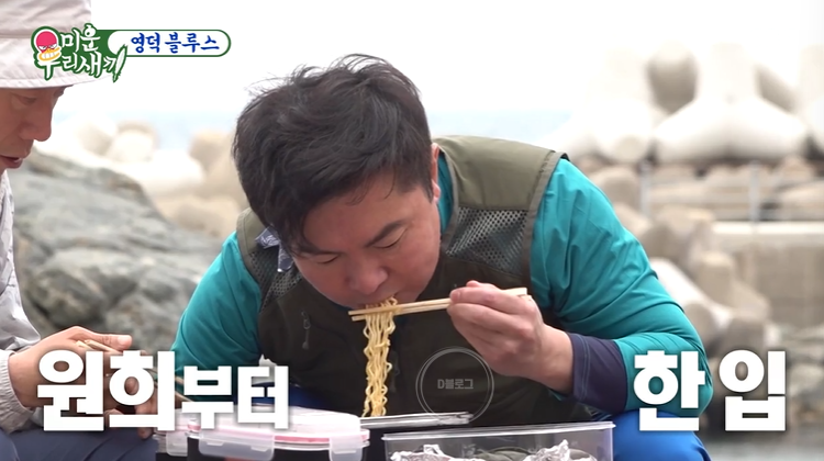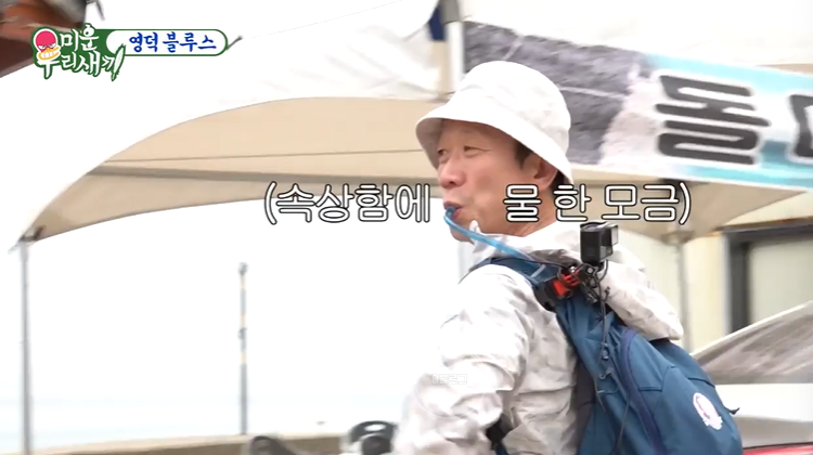 가는 길에 마을 주민들이 미역 작업하는 모습도 볼 수 있네요. 그러다 정석용, 임원희 결혼 공격도 받고ㅋㅋㅋ "쉽지가 않네요" 근데 정석용 가방 특이해요. 물 빨대가 달려 있어요!