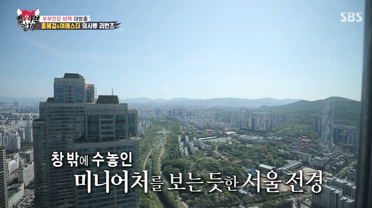 여에스더, 홍혜걸 부부의 서울 집이 공개됐어요. 제주도에 이어 두 번째 집 방문인데요. 서울 집이 어마어마하게 좋더라고요! 특히 뷰가 대박임! 현재 왼쪽은 남편 홍혜걸이 쓰고, 오른쪽은 여에스더가 쓰고 있대요.
