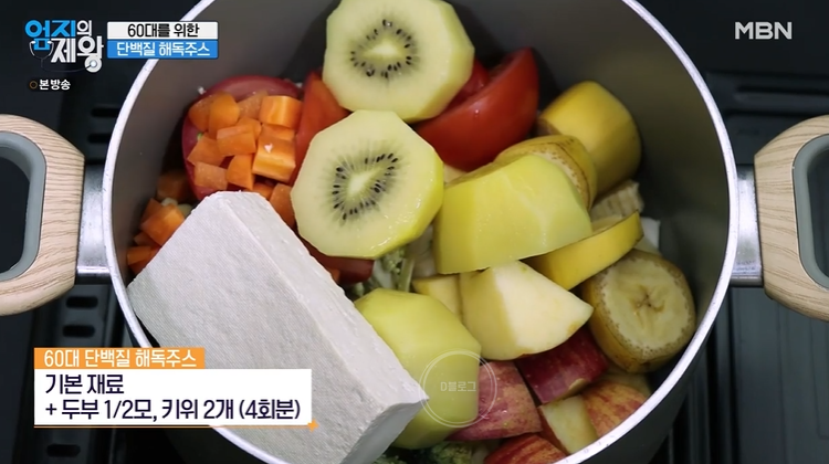 ▼ 60대를 위한 단백질 해독주스 : 기본재료+두부1/2모, 키위 2개 (4회분 기준)