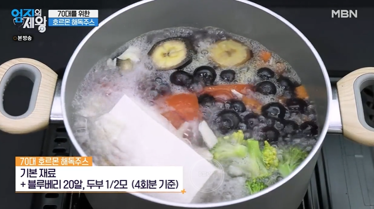 ▼ 70대를 위한 호르몬 해독주스 : 기본재료+블루베리 20알, 두부 1/2모 (4회분 기준)