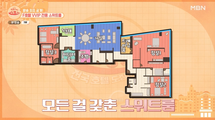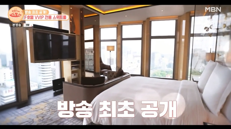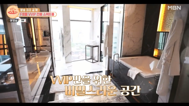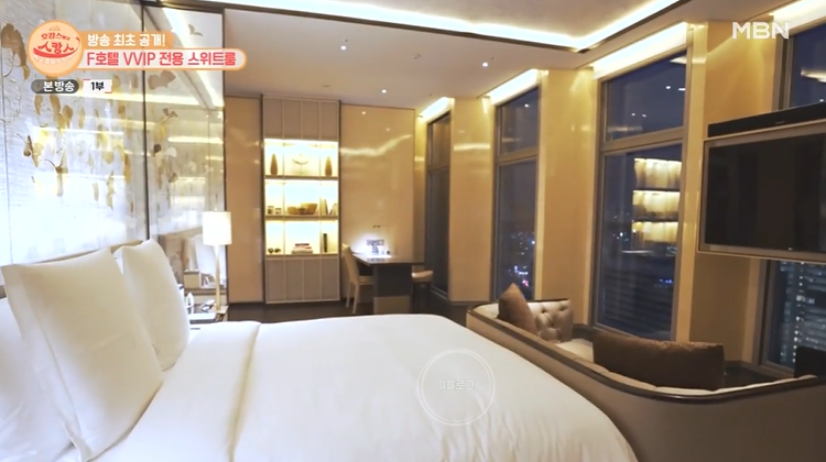 VIP 고객은 인룸 체크인 서비스를 제공한대요. 바로 29층 스위트룸으로 고고. 조명이 너무 멋있어서 시선을 빼앗네요. VVIP 전용 스위트룸인데 방송 최초 공개됐어요.