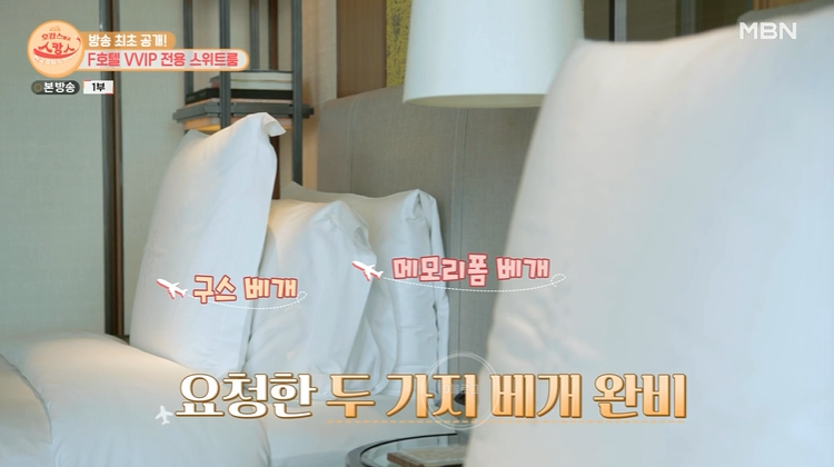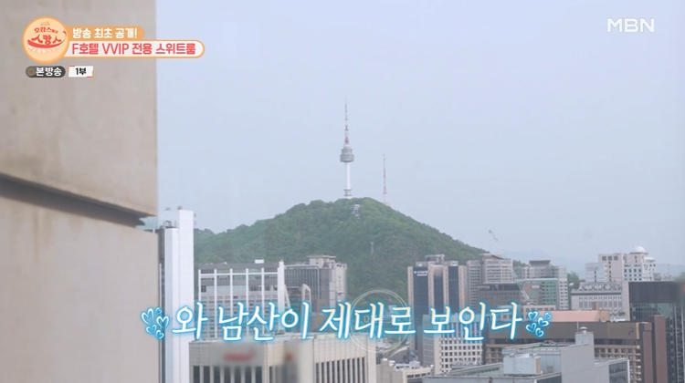 마스터 침실부터 구경해볼게요. 파노라마 스카이라인! 창밖으로 환상적인 시티뷰가 펼쳐져요. 베개 종류도 지정할 수 있대요. 소유는 구스 베개, 메모리폼이랑 섞어 달라고 하고 가습기, 공기청정기도 요청했네요. 남산 뷰는 덤!