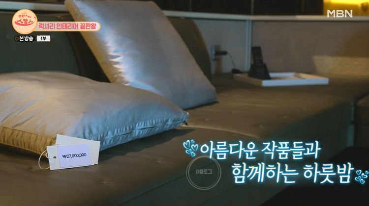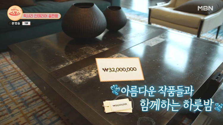 도자기, 기름 등은 모두 유명 작가들의 작품이에요. 도자기는 거의 1억원, 그림은 3천만원 등이네요. 소파는 2700만원, 테이블은 3200만원 등 소품들도 모두 고가예요.