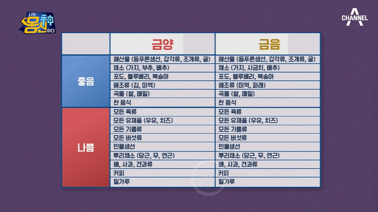 ◆ 금 체질(금양 금음) 좋은 음식/나쁜 음식