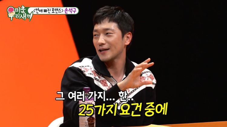 "말을 재밌게 하는 유머러스한 여성. 여러 가지.. 한 25가지 요건 중에 그게 중요한 거 같아요. 재밌는 거에 대한 동경이 좀 있어요"