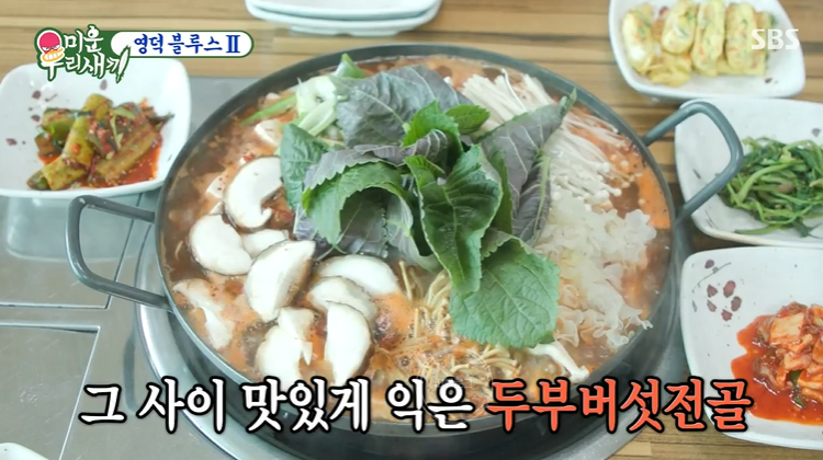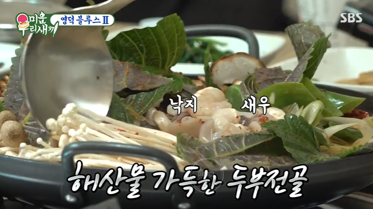 그리고 순두부 전골 먹으러 식당 고고! 여기는 경북 영덕에 위치한 '민국이네식당'이에요. 낙지, 새우, 고기도 들어가 푸짐하네요.
