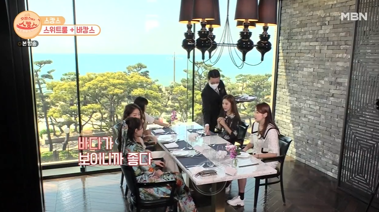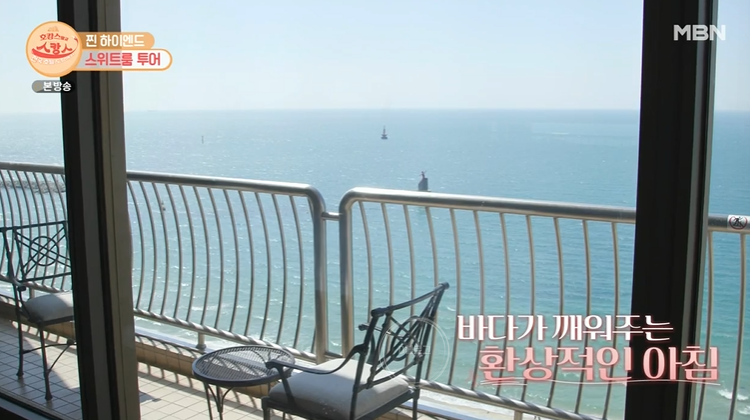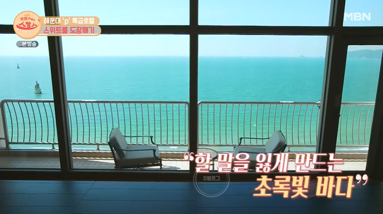 그런데 더 예술은 바다 뷰예요. 에메랄드 초록빛 무슨 일.. 3면이 통창으로 해운대를 그대로 담았네요. 테라스로 나오면 힐링 그 자체.