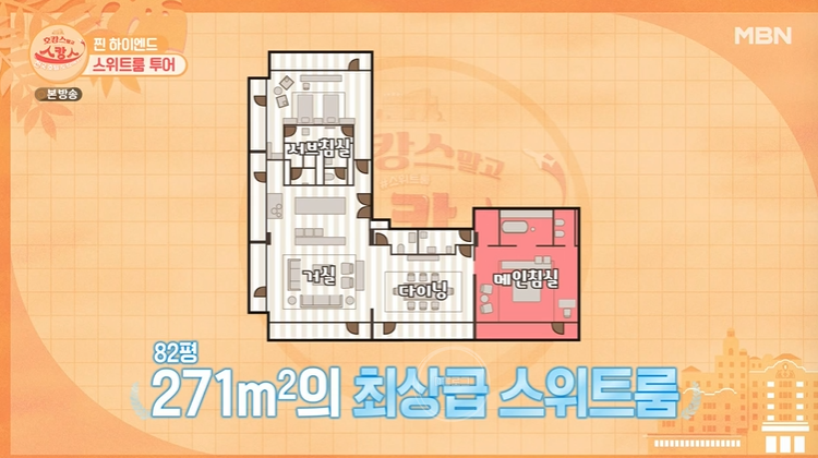 메인침실, 서브침실, 거실, 다이닝룸으로 구성됐네요.