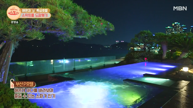 해운도 오션뷰 명당 부산 p호텔 스위트룸 공개! 1981년 개업한 이 호텔은 부산 해운대를 대표하는 특1급(5성) 호텔로, 총 532실을 보유하고 있어요. 인피니트 풀이 있는 야외 수영장은, 해운대 바다를 바라보며 즐길 수 있는 스파도 준비돼 있죠. 밤에 보면 조명 때문에 더 예쁘네요.