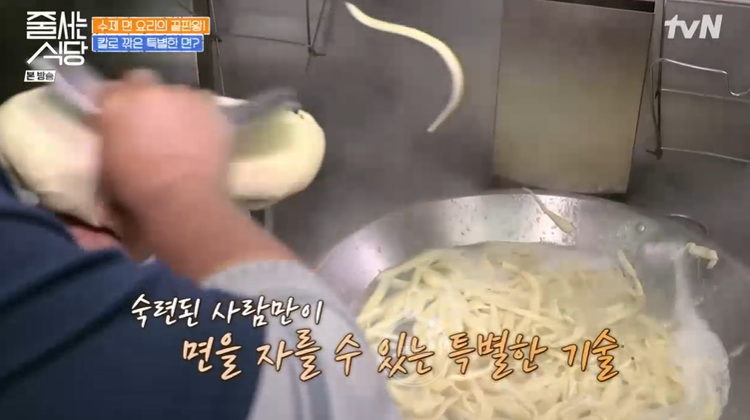 대표 메뉴는 딤섬과 도삭면! 도삭면은 밀가루 반죽을 칼로 깎아 뽑아내는 면으로, 한국의 수제비 같은 느낌이래요. 면이 넓고 두께가 제각각인 것이 특징! 하루에만 무려 500그릇이 팔린대요. 현지 장인에게 전수받은 레시피로 만들어진다고.