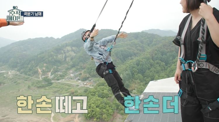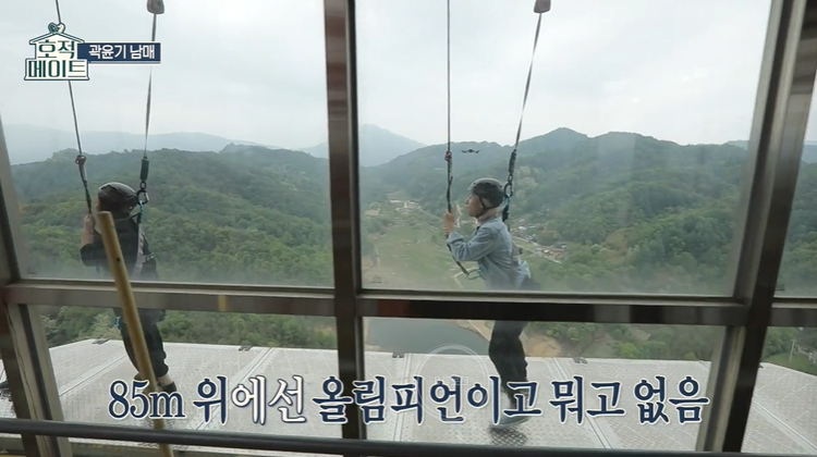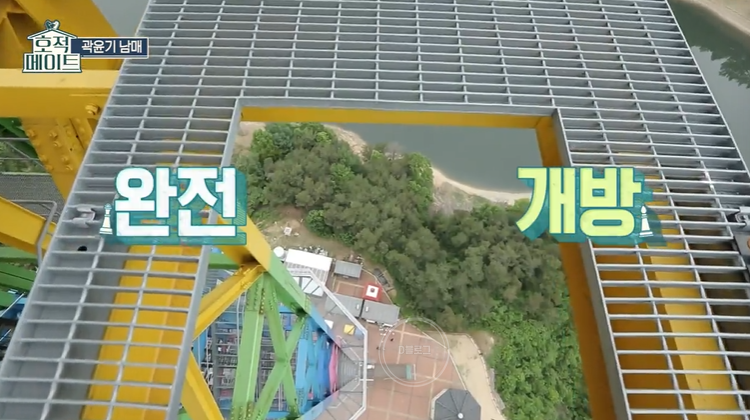 유리문을 지나면 본격적인 스카이 워크 시작! 난간도 없고 무슨 일.. 여기서도 동생 앞세우는 곽윤기ㅋㅋㅋ
