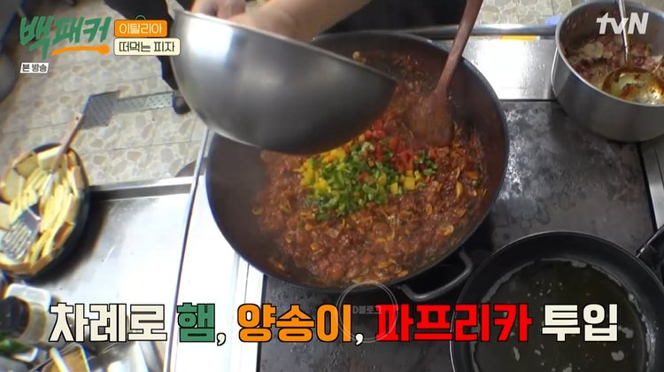 백패커 백종원 만능소스 만들기 2022년 6월 9일 3회 방송 1. 팬에 마늘, 양파 볶기 2. 토마토, 셀러리 착즙 3. 팬에 셀러리토마토 소스 투하 4. 우스터소스 투하 5. 오레가노 추가 6. 파프리카 가루