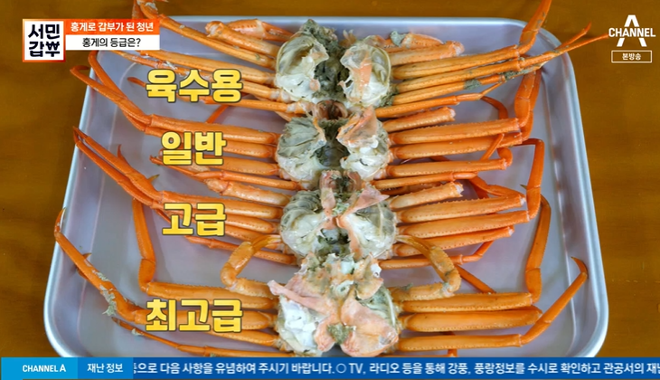갑부 가게는 홍게를 4등급으로 나눈대요.