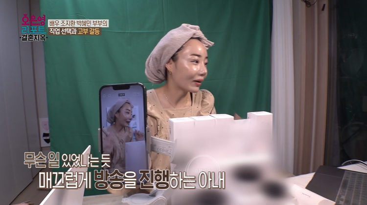 박혜민은 오후 10시가 되면 라이브 방송을 진행해요. 그 전까지 딸을 재우는데, 딸이 안 자면 버럭 화를 낸대요. 그래서 딸에게 미안하다고.. 조지환은 일 끝나고 들어오면 아내 방송을 돕기도 해요.